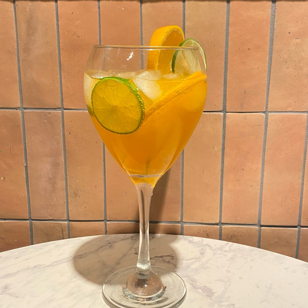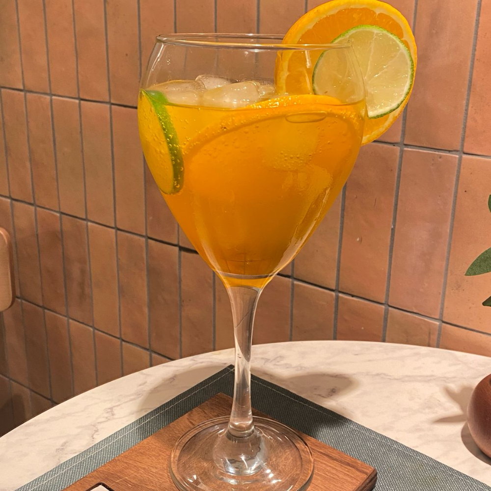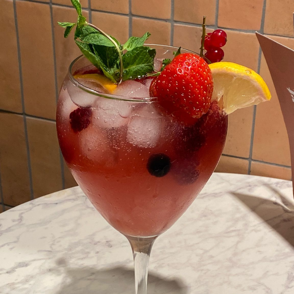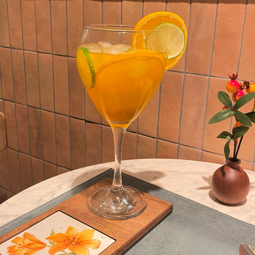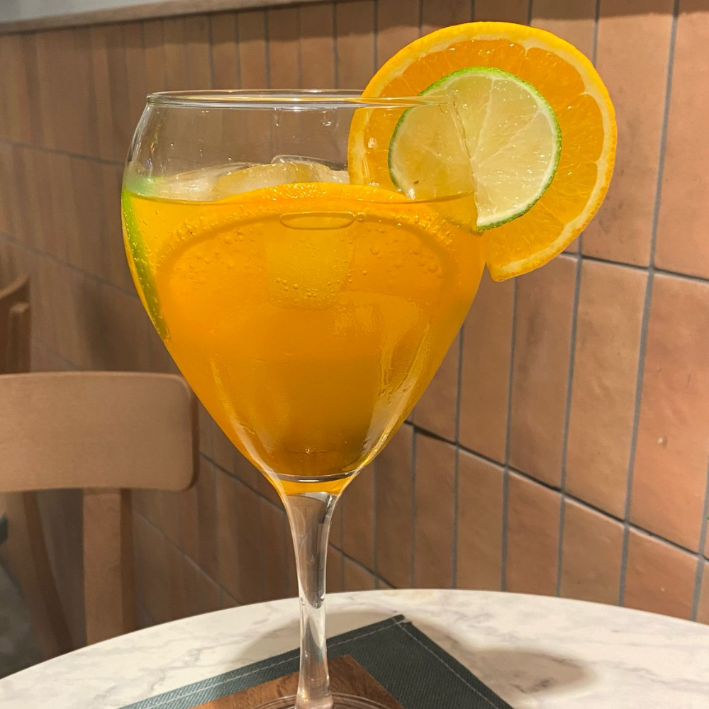 Our beverage selection changes with seasonal ingredients, ensuring fresh flavors year-round. Spring features fresh herb teas and light fruit smoothies, summer brings cooling iced beverages and peak fruit combinations, autumn offers warming spiced drinks and harvest fruit flavors, while winter provides comforting hot beverages and citrus-rich options. The Frappe Iced Coffee comes in chocolate, mint, or vanilla flavors, while our Homemade Lemonade features seasonal fruit variations. For those seeking refreshment, we offer Natural Apple Juice, Fresh Orange Juice, and classic options like Ginger Ale, Ginger Beer, and Cola Zero. Our Aperitivo and Mocktails section includes Crodino Biondo, Spritz, Pink Mocktail, Virgin Mojito, and Papa’s Tonic – all nonalcoholic, healthy, vegan, and gluten-free.